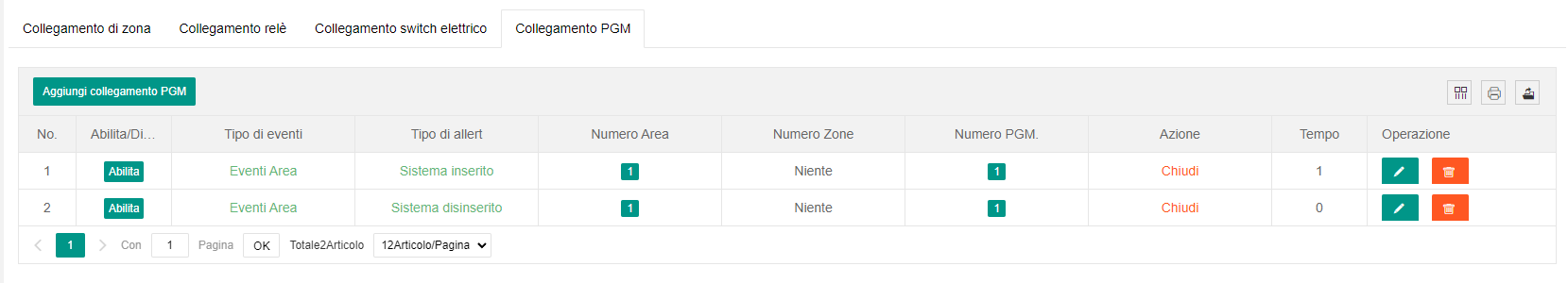 CONFIGURAZIONE PGM PER USCITA ARMATA